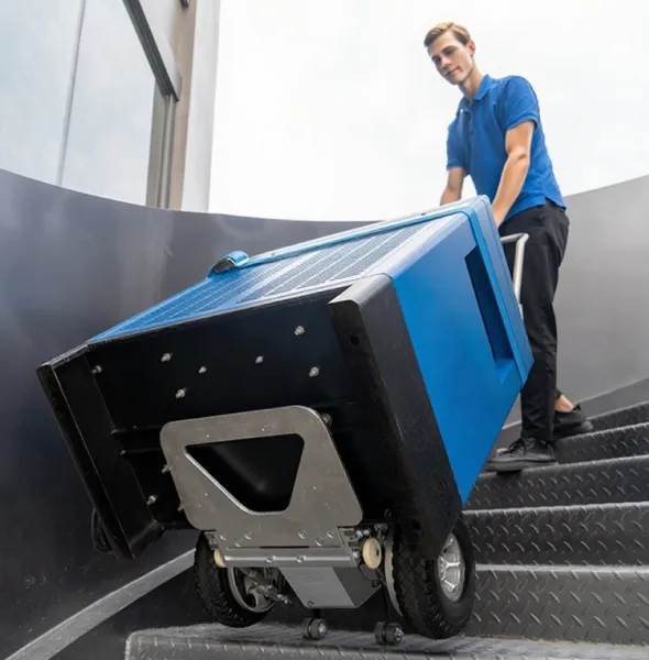 El sube escaleras eléctrico ZW7250GC integra un tren motriz de desarrollo propio con una carcasa de aleación de aluminio. Tiene una estructura fuerte y más duradera, con una capacidad de carga de hasta 250kg. La máquina tiene un sistema de freno de desarrollo propio para evitar el deslizamiento y garantizar la seguridad al subir/bajar escaleras.